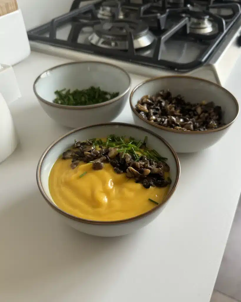 - Sírvela con el champiñón y el cebollino y listo!